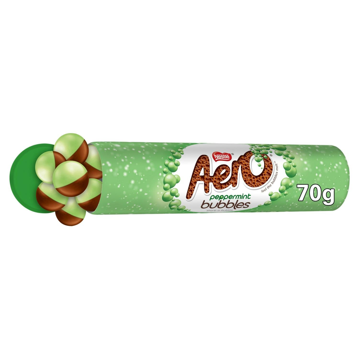 Feel the bubbles melt ® An aerated peppermint flavoured centre with a half milk chocolate, half peppermint flavoured shell. Aero® Peppermint Bubbles make a perfect stocking filler or gift at Christmas. What makes AERO so deliciously special? It's the chocolate bubbles that are designed to melt effortlessly in your mouth. Aero® is a much-loved chocolate brand and is famous worldwide for its unique, bubbly texture, and has been for decades. Aero® was first launched in 1935 in peppermint flavour, followed by the milk chocolate variation in the 1970s. Since then, we've been creating even more ways to enjoy Aero®, such as Aero® Bubbles, the perfect way to spread the bubbly joy. With new flavours such as Dark & Milk joining the range, there's an Aero® for everyone. When it's time for a treat, pick up an Aero® and feel the bubbles melt™.