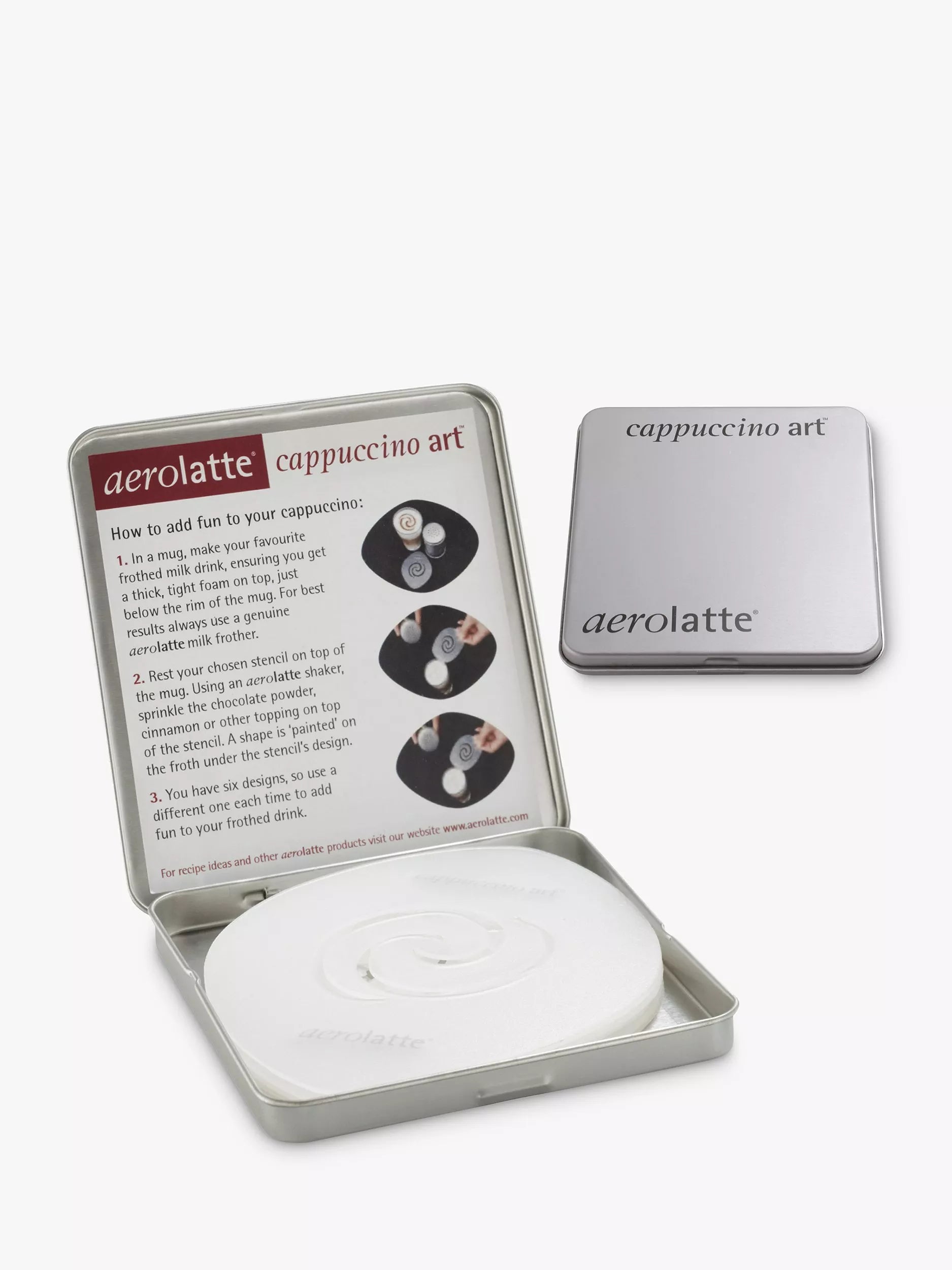 Create professional, barista-like art for your cappuccino, caffè latte and hot chocolate at home. This set includes six novel and fun designs: Swirl/Whisk, Smile/Wink, Star/Space, Leaf/Autumn, Snowflake/Festive and Heart/LoveStencils.