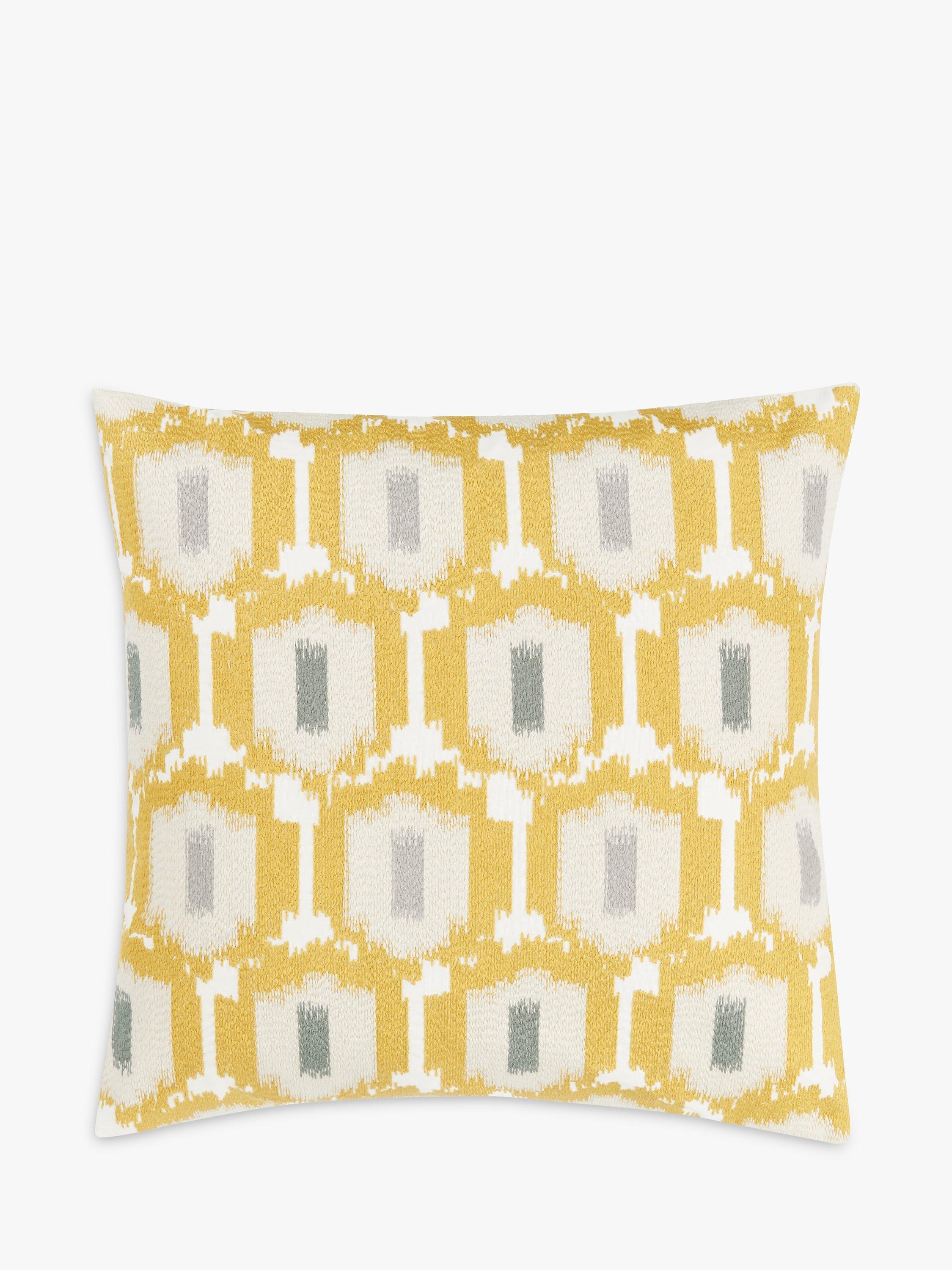 The John Lewis Agra Cushion enhances any room with its distinctive visual appeal and quality construction. This furnishing features a Fusion-inspired geometric pattern embroidered intricately using the long-stitch technique onto the pure cotton cover material. It offers textured refinement.