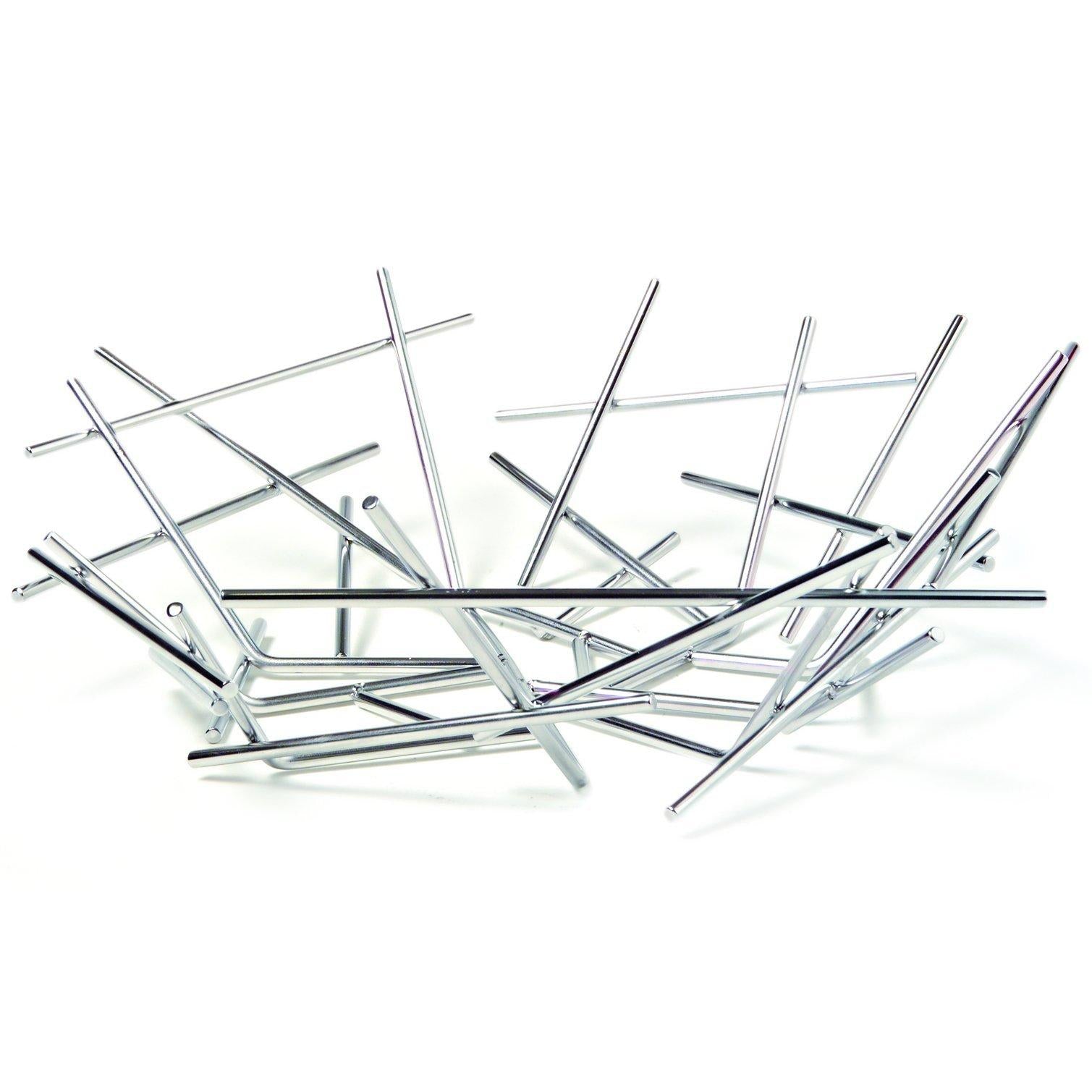 Alessi Blow Up Basket offers a striking sculptural interpretation of conventional storage. Designed by Fratelli Campana, this decorative accessory appears as scattered steel rods forming a unique container. It integrates artistic Italian design into contemporary living spaces effectively.