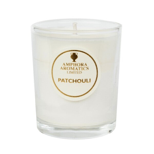 patchouli 20hr pot candle in an attractive clear glass pot an earthy and sensuous scent in an attractive ivory colour made from pure essential oils and 100 natural plant wax wax comes from a natural sustainable plant source our candles contain no petroleum based paraffin wax and animal products reuse the glass pot for tealights or trinkets to recycle the pot place in your normal clear glass recycle bin also available in a larger 40 hour pot size vegan friendly