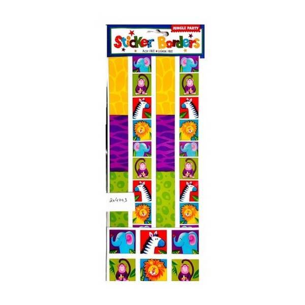 These Amscan stickers feature a vibrant jungle animal print, ideal for various craft projects. The product packaging is professionally printed and includes a header card designed for euro hook display. Ensure your adhesives and decorations are long-lasting, as these stickers are formulated to be non-acidic. This A4 design set offers ample material for creative applications.
