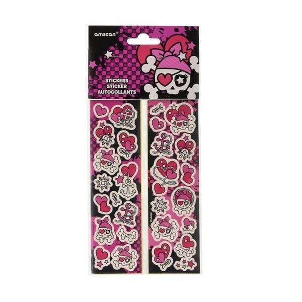 This Amscan set features themed pirate stickers ideal for various decorating projects. These durable stickers incorporate popular pirate motifs, providing easy visual enhancement for personal items or party favours.