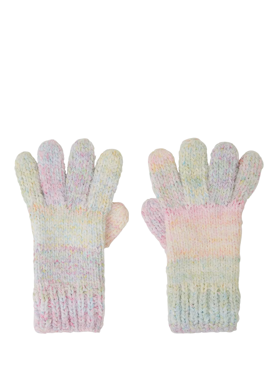 Who wants a snowball fight? Woven in soft chenille, these gloves are finished with a soft ombre rainbow hue.