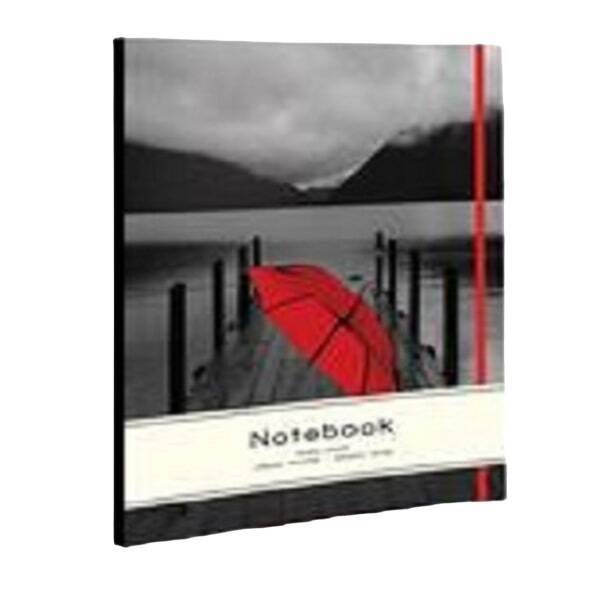 A5, Elastic Fastener, Fabric Cover. Design: Bridge, Mountain, Pond, Text, Umbrella.