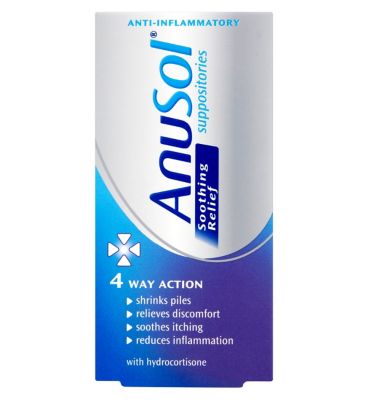 Anusol Soothing Relief Suppositories contain added hydrocortisone to reduce inflammation and ease the discomfort of internal piles (haemorrhoids).