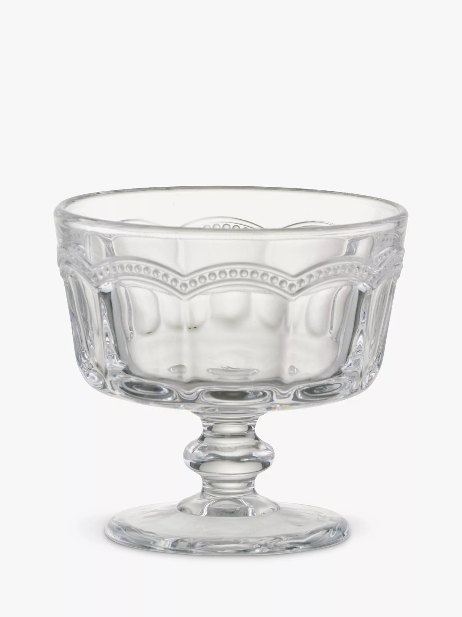 A beautifully tactile yet simple and delicate design. Made from pressed glass, Pearl Ridge's decorative relief twinned with the classic shapes is reminiscent of summer and the countryside.