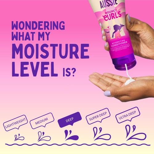 Read MoreHappy curls day every day! Aussie Bouncy Curls Conditioner is your go-to for keeping waves and curls extra hydrated and full of bonza bounce, without any weigh-down. Infused with a triple oil blend of Jojoba Oil, Coconut Oil, and Australian Macadamia Nut Oil, this conditioner works wonders. Oh, and did we mention it smells ah-mazing? This curly hair deep conditioner is also PETA certified cruelty-free and vegan*. For extra care, use it with the Aussie Bouncy Curls hair care range. *Vegan formula: no animal-derived ingredients or by-products.