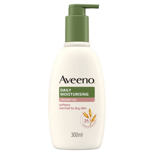 Discover the dual power of a lotion and an oil in the Aveeno Daily Moisturising Creamy Oil. This luxurious product features a rich, non-greasy formula containing sweet almond oil, designed to provide deep nourishment for dry skin.