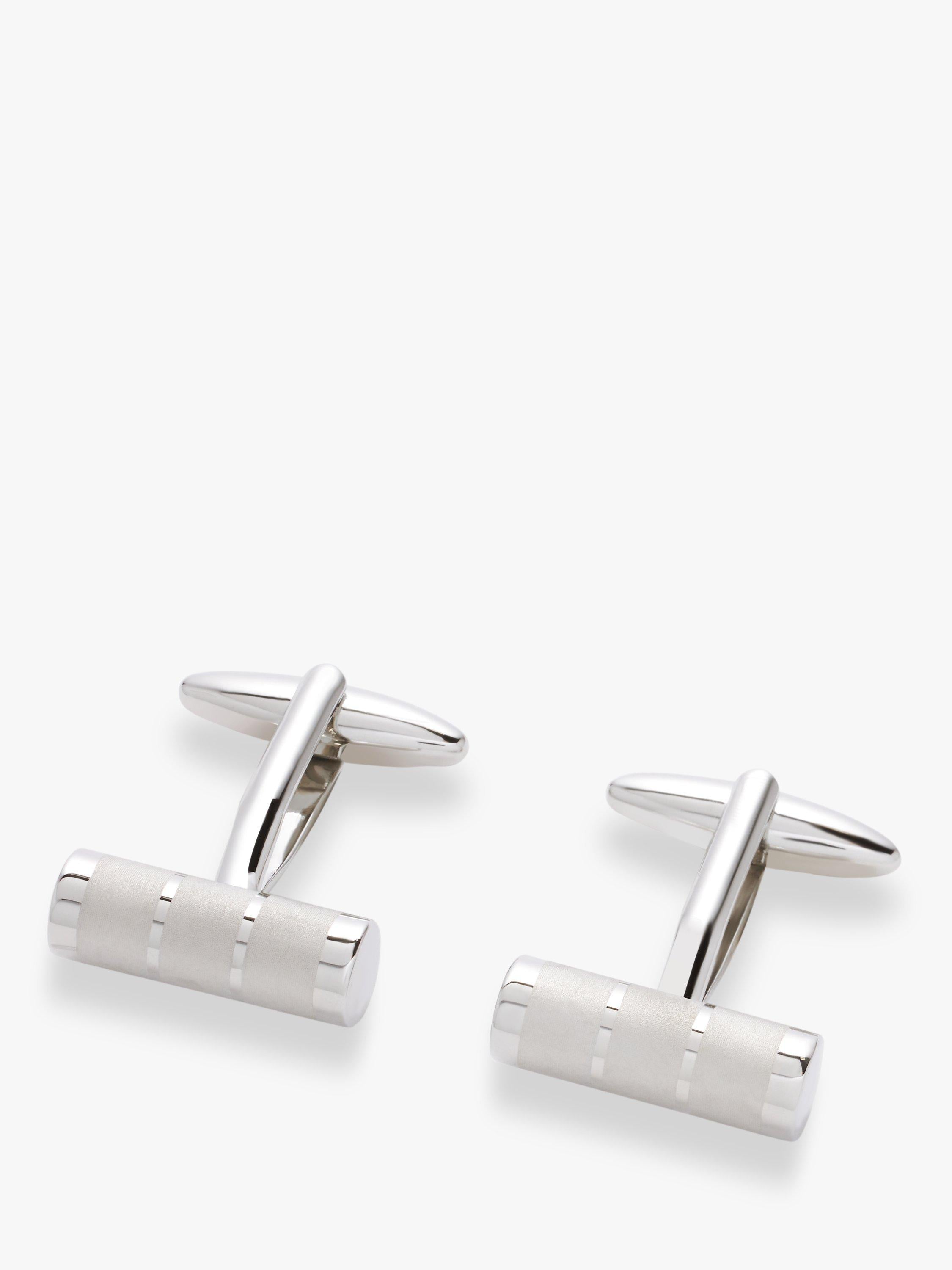 John Lewis presents these round bar cufflinks, expertly crafted from durable brass for lasting wear. Featuring a sleek imitation rhodium plating, they offer a refined metallic sheen ideal for any formal ensemble. This sophisticated accessory secures perfectly via its hinged fastening for guaranteed elegance.