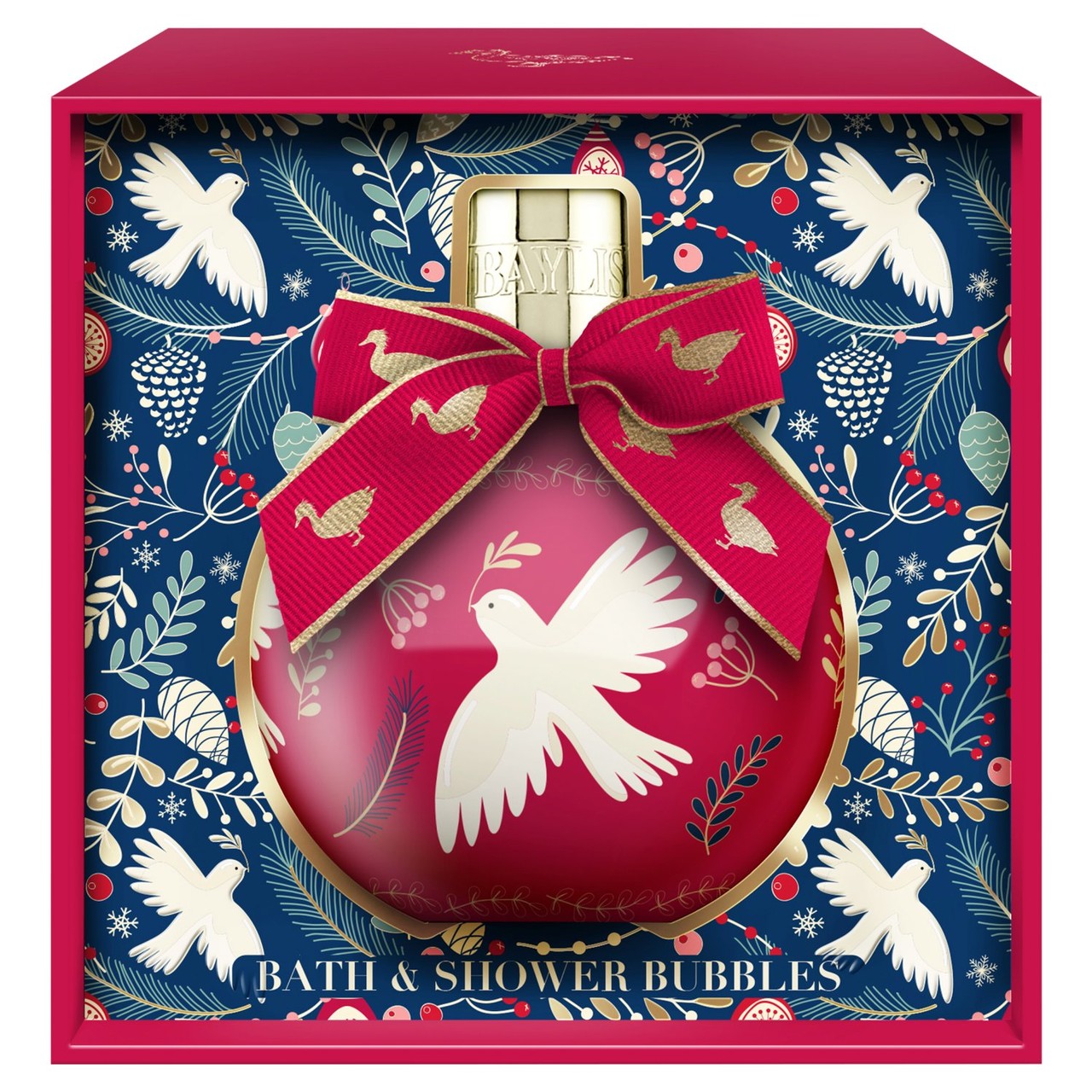 Introduce festive cheer to your bath time ritual with this beautiful Baylis & Harding bauble set. This charming item contains 250ml of Bath and Shower Bubbles, scented distinctly with Festive Cranberry. It is presented ready for gifting, offering a moment of seasonal relaxation during the holidays.