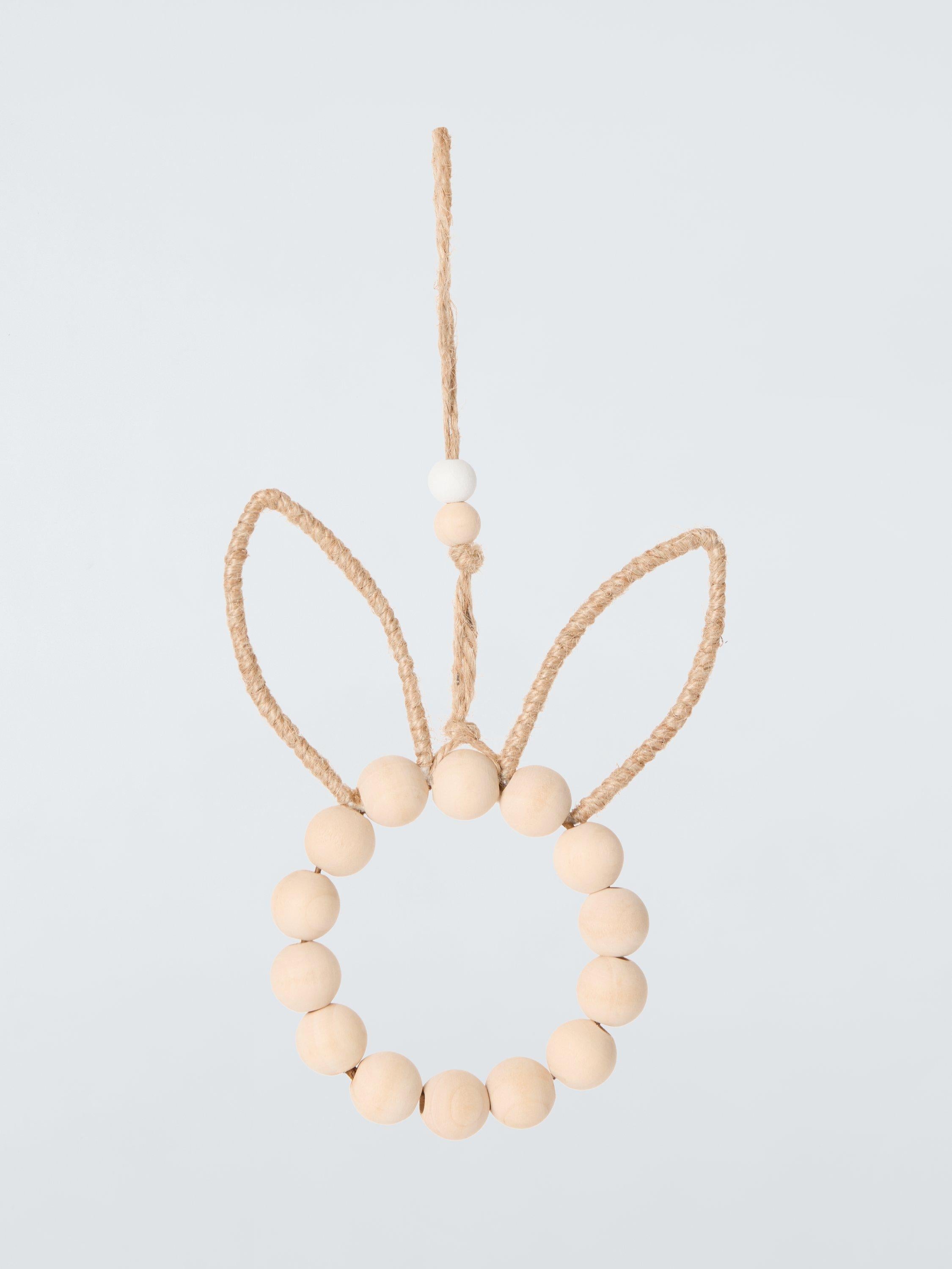 JL Decor presents this Beaded Bunny Hanging Decoration, ideal for Easter celebrations. It showcases fine construction using wire, string, and natural wooden beads throughout its design. This unique piece brings rustic charm, suitable for sophisticated springtime displays.