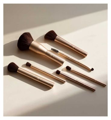Crafted with a luxe matte gold finish; each brush is densely filled with soft premium quality vegan bristles to seamlessly apply and blend all formulas. The length has been ergonomically designed to fit neatly into your hand and includes our unique signature weighted ends to aid the correct pressure for airbrushed application. Premium fibers hold their shape, even after multiple uses and washes.