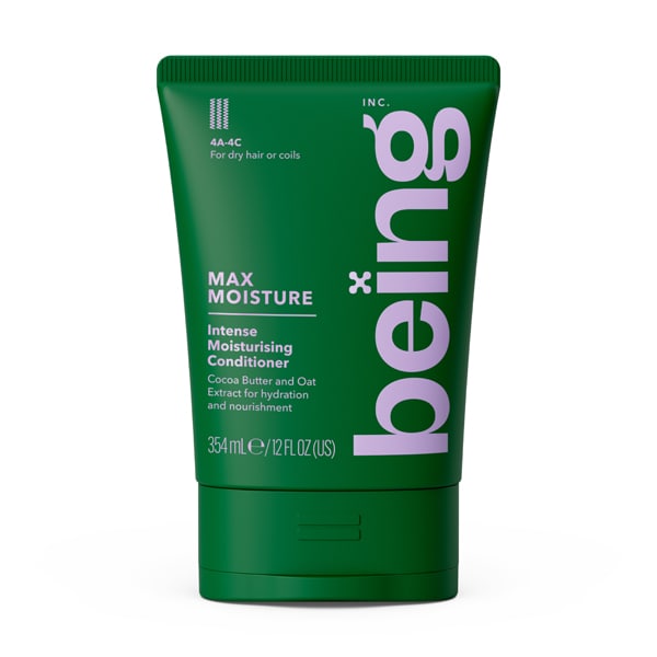Being MAX MOISTURE Intense Moisturising Conditioner is perfect for coily 4A-4C or dry hair. With Cocoa Butter and Oat Extract,this sulfate-free, silicone-free formula deeply nourishes and defines hair
