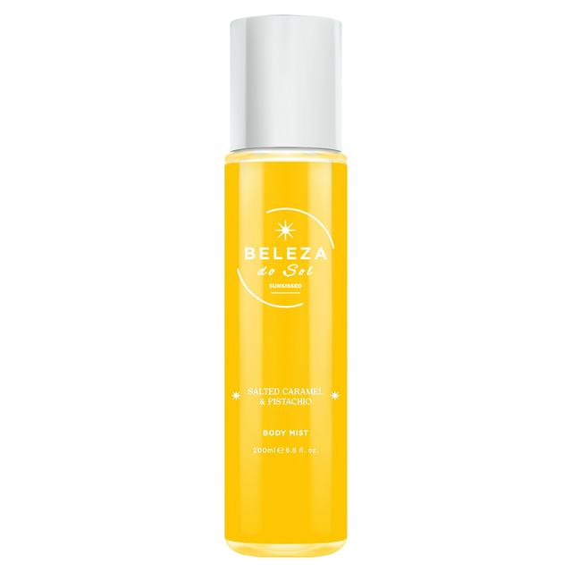 Indulge in the warm, sweet aroma of the Beleza do Sol Sunkissed Body Mist. This fragrance blends notes of salted caramel and pistachio for a comforting scent experience. It is formulated with Alcohol Denat. and Aqua to lightly perfume your skin after daily cleansing routines.