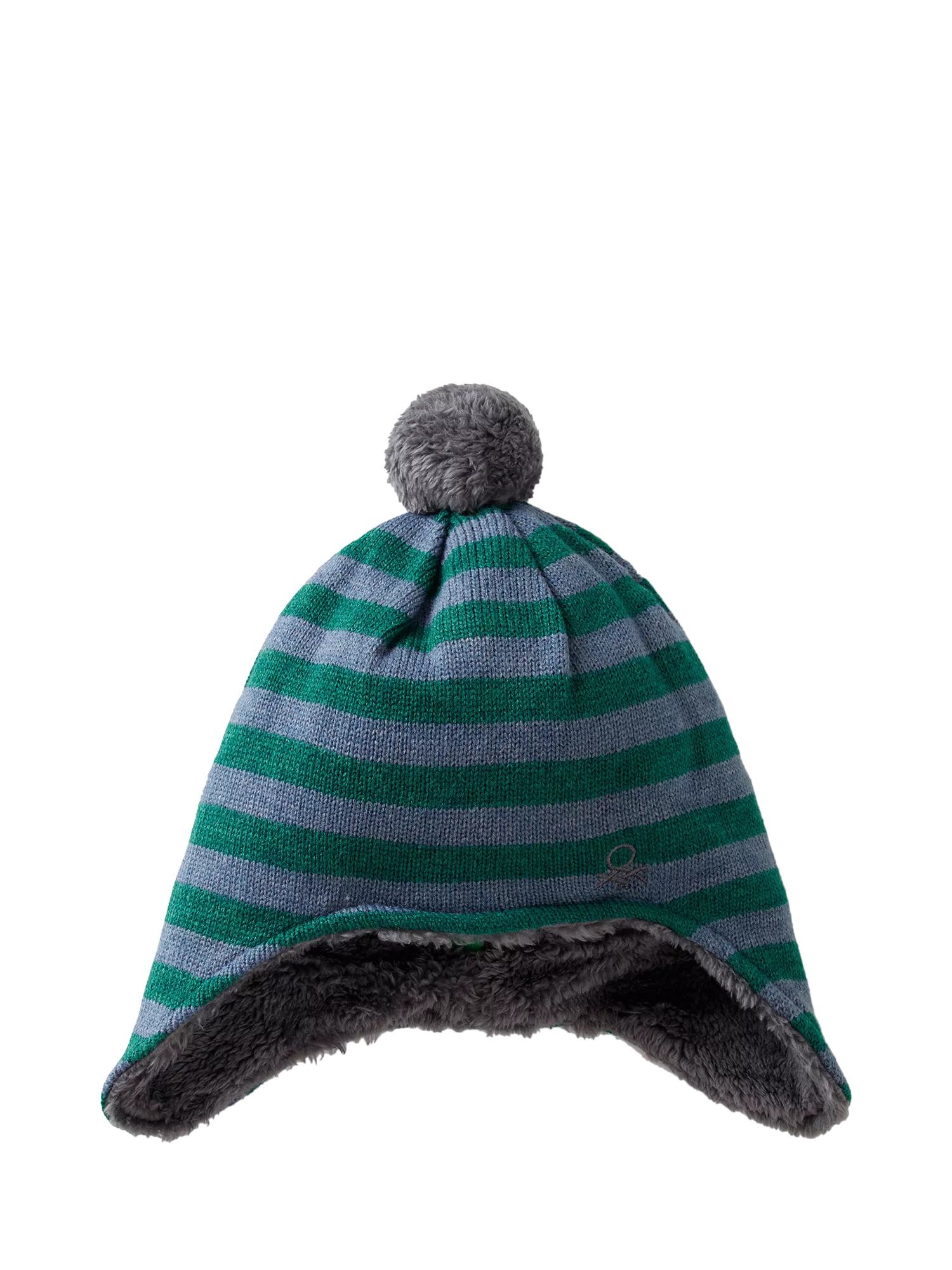 Benetton Kids' Pom-Pom Knit Hat - Green Stripe