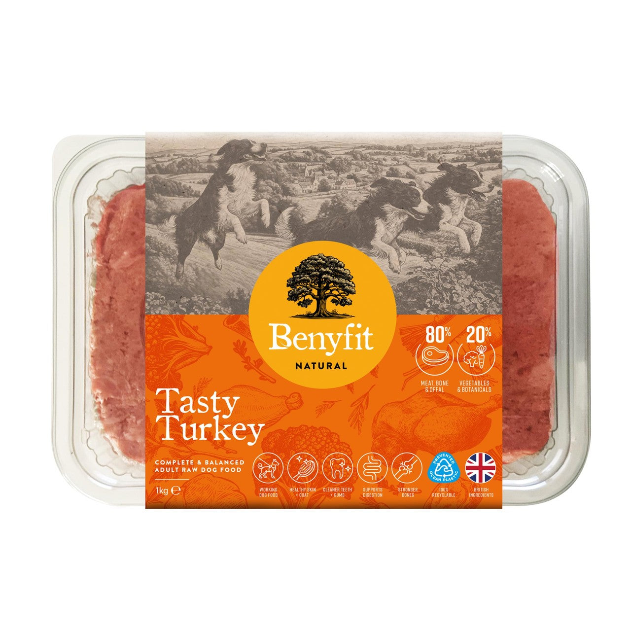 Benyfit Natural offers a complete frozen raw diet formulated with free-range turkey. This premium meal provides your adult working dog with complete nutrition derived from quality ingredients. Customers often observe visible improvements across several health areas after feeding this complete raw dog food.