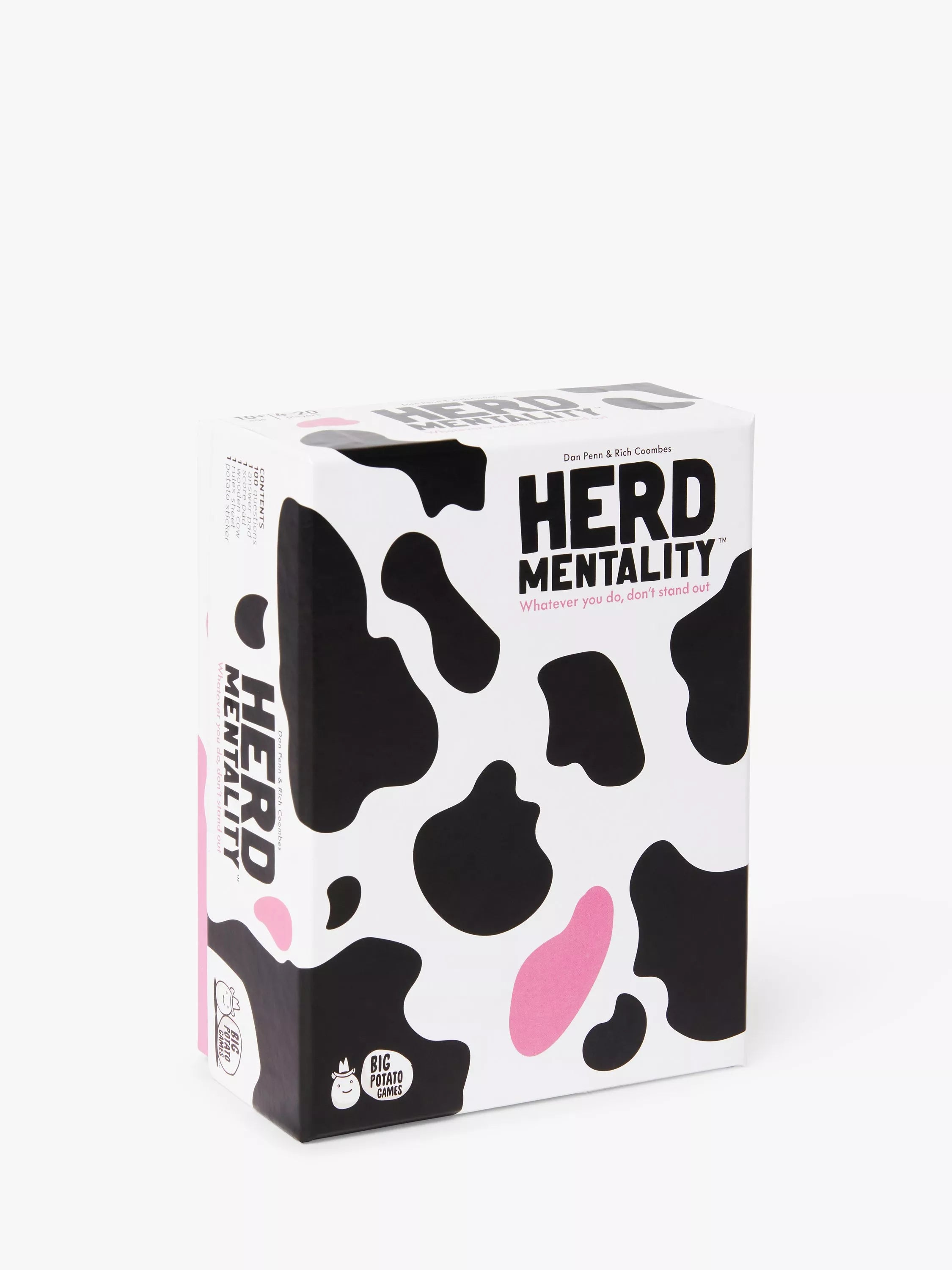 Herd Mentality is a party game with a simple black and white mission: write down the same answer as everyone else. It starts with a random question, then everyone secretly writes down an answer. If your answer is in the majority, you win cows. But if your answer is the odd one out, you'll land the Pink Cow and your herd will be worthless - unless you can pass it on to someone else!