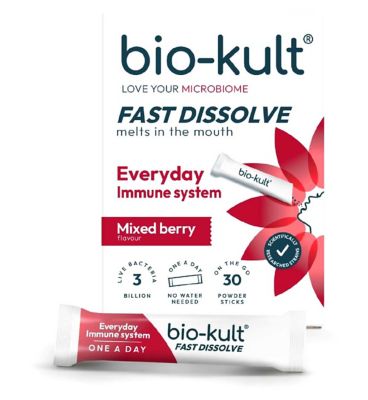 Read MoreBio-Kult Everyday Fast Dissolve Powder Sticks pack billions of gut-friendly bacteria into a fast-melting, great-tasting peach powder that dissolves in the mouth instantly – no water needed!