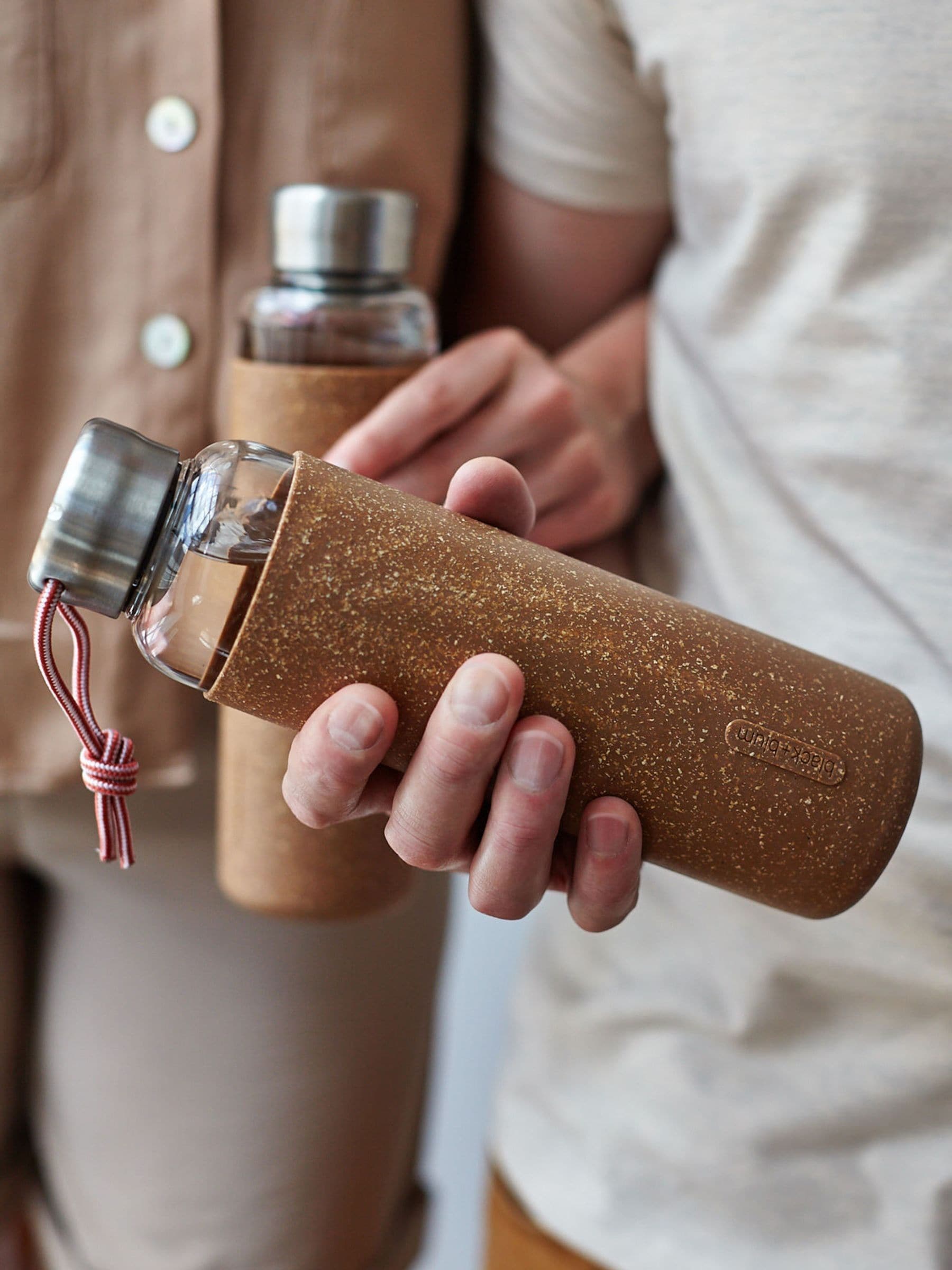 A 600ml Borosilicate glass water bottle with a protective non-slip sleeve, convenient carry loop and full glass and stainless steel contact with water. 100% leak proof. Thread on inside for smooth drinking. High-quality Stainless steel lid. Paracord carry loop. BPA-free. Freezer safe D 6.5cm x H 23.5cm.