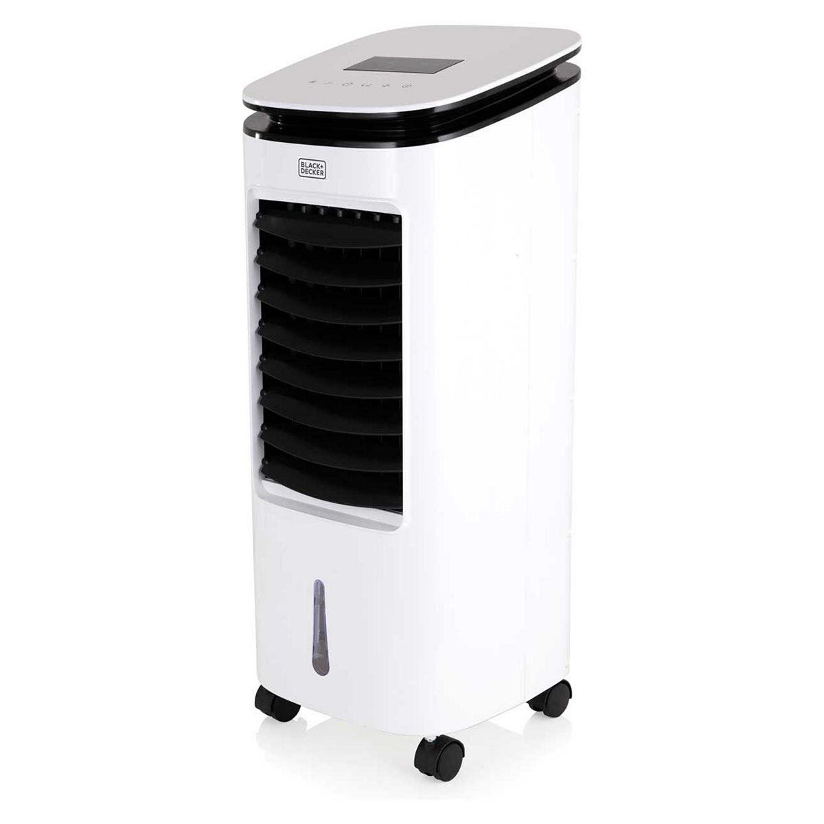 This versatile air cooler can be used as a cooler and fan for all year round use. Choose between high, medium or low speed airflow settings to maximise your comfort and adjust the vertical louvre to redirect cool air across a 90-degree angle around the room. The soft touch LED controls are easy to use when adjusting the desired speed settings and operating functions, with remote control operation that allows you to set the 8 hour timer for flexible and efficient cooling. The advanced cooling system uses dual ice packs to improve the cooling performance and moisture being distributed into the room by evaporating cool water through the cooler's honey comb filtration system. The detachable 7 litre water tank is easy to remove for filling up with fresh water when required. The 360 degree castor wheels allow portable and lightweight manoeuvring around the home. Key Features: