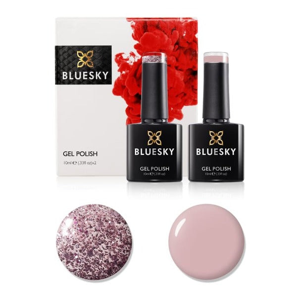 Bluesky gel nail polish offers a high-gloss finish designed for long-term wear. This set pairs glitter shades with popular nude colours for a striking look. For optimal results, use this polish with the corresponding gel base and top coat products.