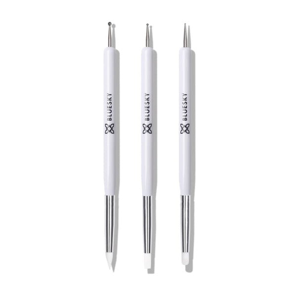 This Bluesky 3-pack double-ended tool set is a multifunctional essential for intricate nail designs. These versatile instruments feature silicone tips, making them suitable for detailed application work across various techniques. They are designed to help you achieve professional-looking manicures at home or in the salon environment.