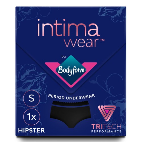 These Bodyform Intimawear period pants offer a comfortable and reusable solution for effective menstrual flow management. The package contains one pair of black hipster-style underwear designed to be a dependable alternative to conventional products. Feel confident using the integrated Tritech Performance technology that ensures reliable security throughout the day.