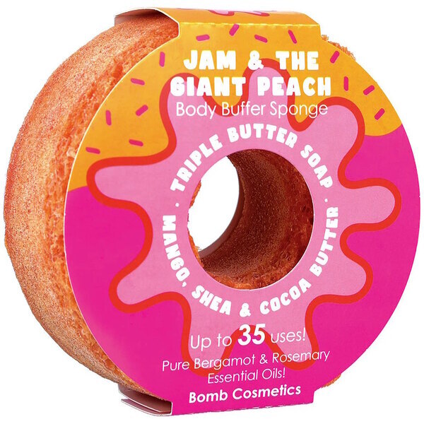Soap Infused Sponge with Essential Oils Scent: Bergamot & Rosemary Can be used up to 35 times Proudly cruelty-free & handmade Transform your bathing routine with the luxurious Jam & The Giant Peach Body Buffer Sponge. Designed to cleanse, exfoliate, and moisturise in one easy step, this innovative sponge is infused with delightful essential oil fragrance, offering a refreshing and invigorating experience. Its dual-action design gently removes dead skin cells while delivering nourishing moisture, leaving your skin feeling silky smooth, soft, and hydrated after every use. Completely cruelty-free, vegan-friendly and handmade, this body buffer creates a rich lather, making it perfect for daily self-care or a pampering spa-like experience at home. With the ability to be used up to 35 times, it offers long-lasting value and effectiveness. Compact and travel-friendly, it's ideal for gifting or simply elevating your everyday shower routine. Treat yourself or someone special to the Jam & The Giant Peach Body Buffer Sponge—a little luxury that leaves a big impact on your skin.