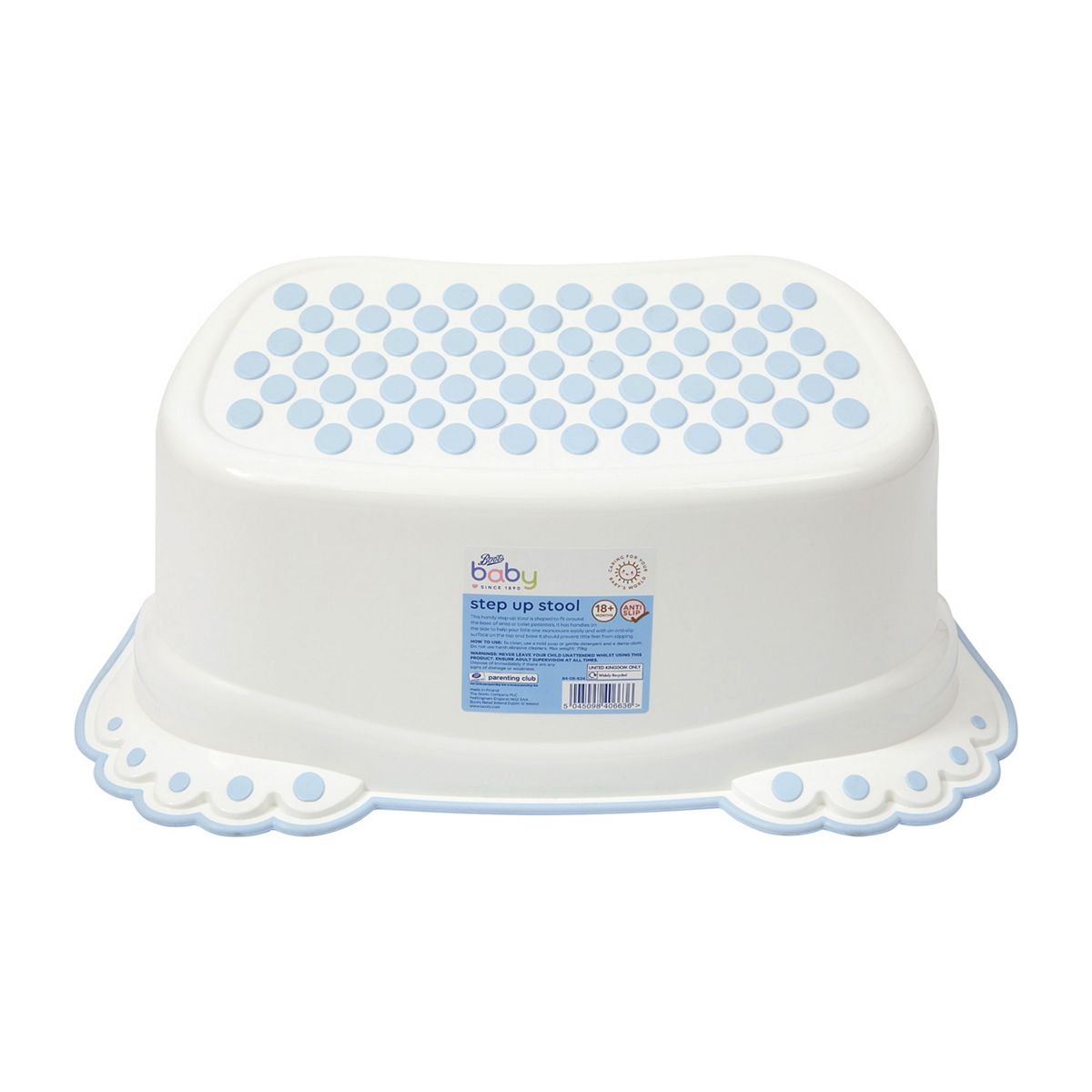 This handy step-up stool is shaped to fit around the base of sinks or toilet pedestals and has handles on the side to help your little one move it easily. Our stool also has an anti-slip surface on the top and base which should prevent little feet from slipping.