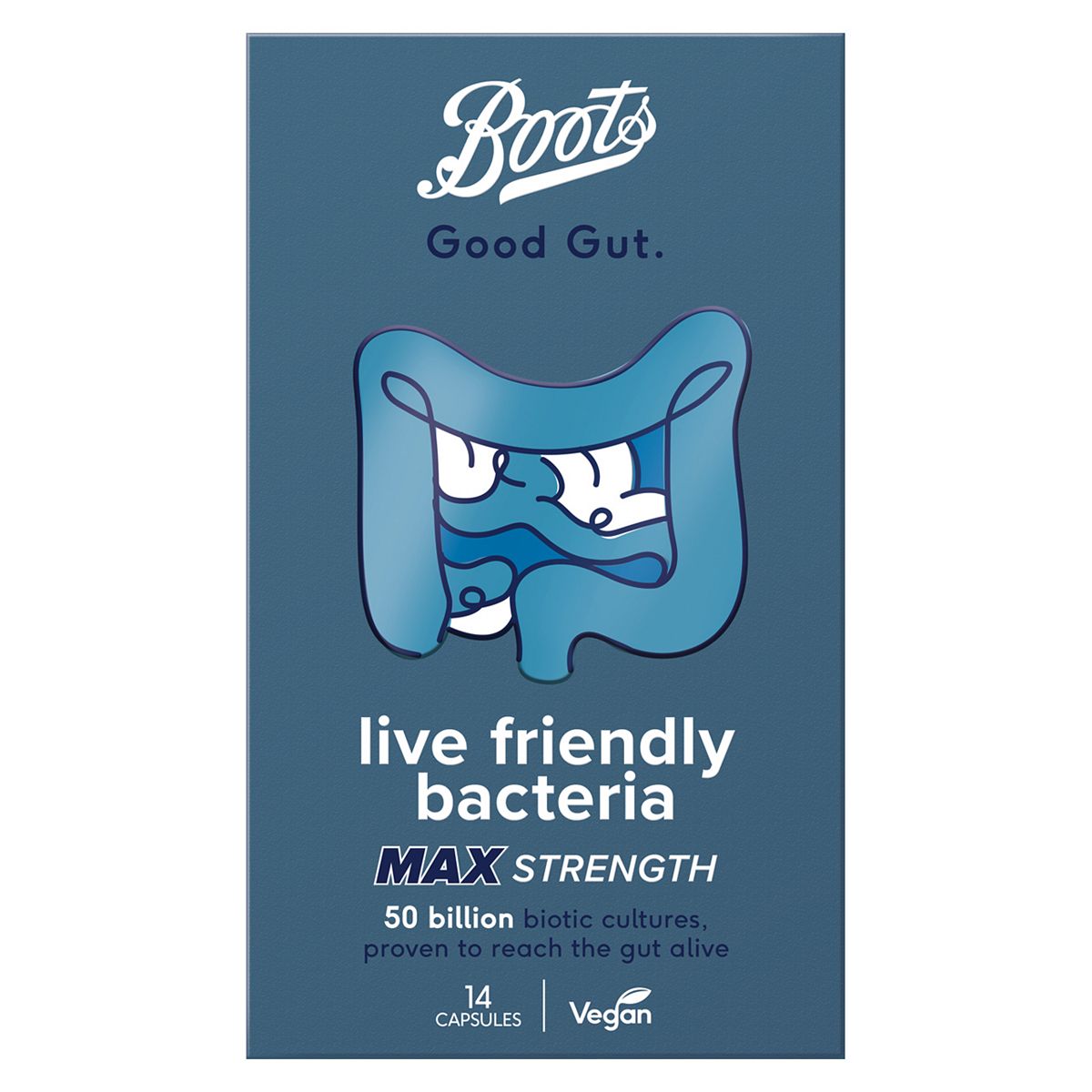 Boots Good Gut live friendly bacteria Max Strength contains 50 billion biotic cultures, giving you that little extra support for when you’re taking a course of antibiotics, are off on an adventure abroad or just want an extra boost to top up your good gut bugs.