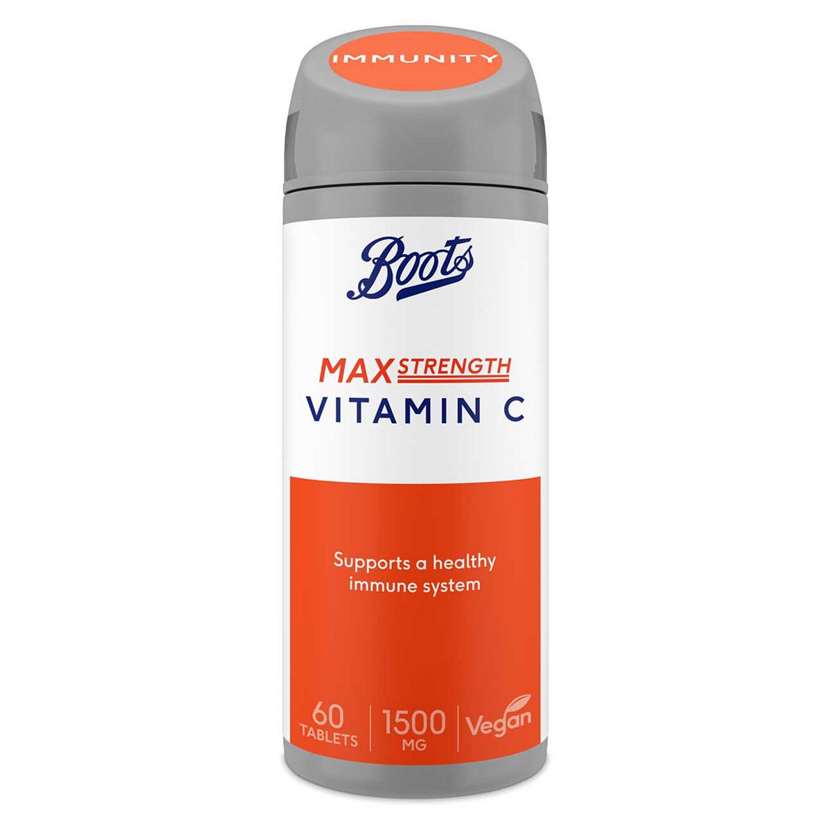 Boots Max Strength Vitamin C, 60 TabletsWhat does it do?Vitamin C is water soluble, so it is only stored in the body in small amounts making a regular intake important. Our max strength formula of Vitamin C, with citrus bioflavonoids, contributes to a healthy immune system. Free from Artificial Colours, Flavours and Preservatives. Lactose Free.