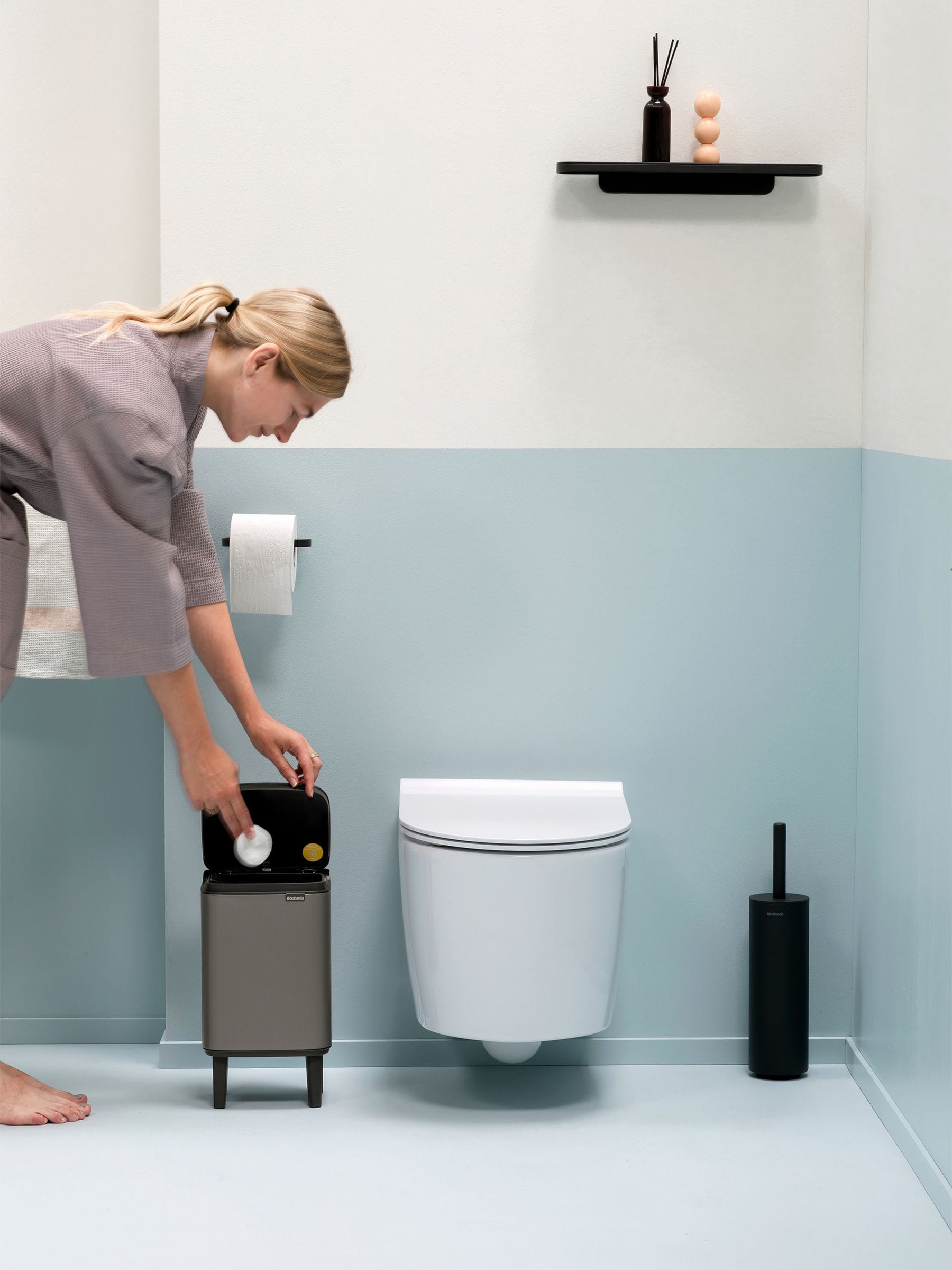 In need of a more discreet bin that looks more like a sleek piece of furniture? Then the Brabantia Bo Waste Bin Hi four litre is the bin for you! This space-saving bin fits perfectly in any corner. The nifty lid pens easily from the left, right, and front of the bin. So no more twisting your arm to put something in. Now that s handy and stylish!