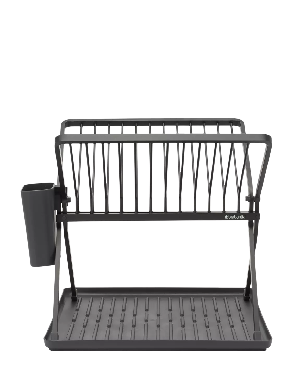 This dish drying rack with drip-tray easily holds up to 13 plates or pots, pans and glassware. The basket for drying cutlery and utensils is removable, making it easy to collapse the rack and tidy it away.