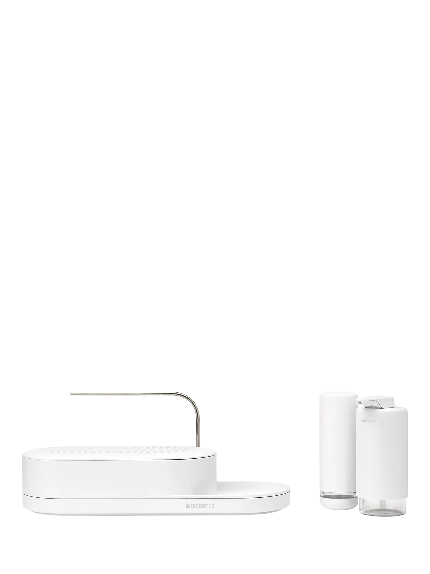 The separate non-skid tray with silicone liner keeps it in place, together with the matching soap dispenser and soap squeezer - great for your hand and dish soap.