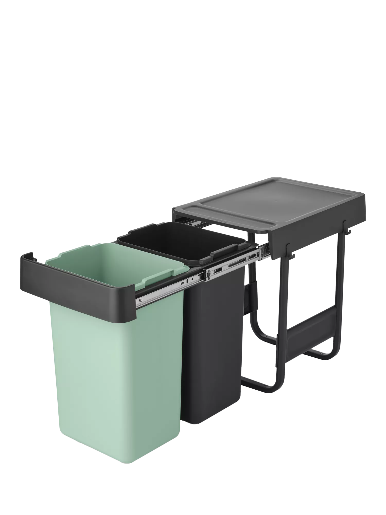 Double your waste-separating power, without losing any floor space with this duo. Made to hide in the cupboard, these discreet bins fit in most kitchen cupboards, whether the doors open to the left or right.