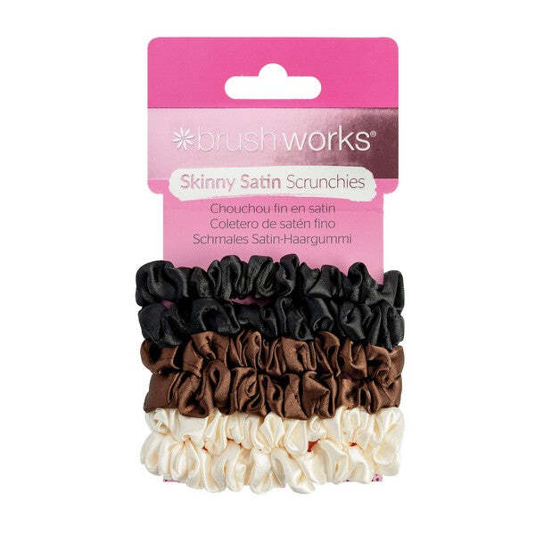 Brushworks Skinny Satin Scrunchies - 6 Pack