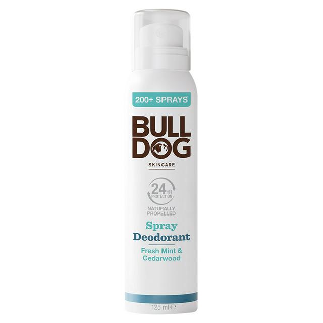 Bulldog Skincare presents this 125ml spray deodorant featuring a fresh blend of mint and cedarwood. This formula is naturally propelled and designed to deliver reliable 24-hour protection throughout your day. It has been dermatologically tested for safety and carries the approval of the Vegetarian Society as vegan-friendly. The product formulation relies heavily on plant-derived materials for its composition.