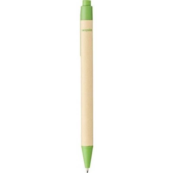 material recycled carton and corn plastic pen with click action mechanism features a clip and coloured accents barrel colour may vary size 14cm