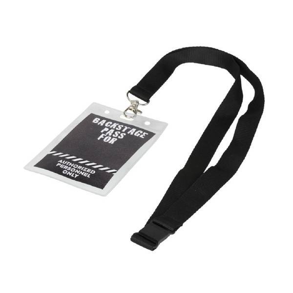 Material: PVC Plastic. Badge holder with insert on the back and opening on top to attach to a lanyard or roller clip. Dimensions: L:0.1cm x W:10.7cm x H:8.2cm.
