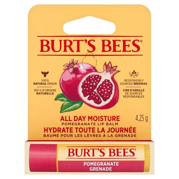 burts bees moisturising lip balm pomegranate rejuvenates and beautifies lips naturally with a sweet fruity flavour