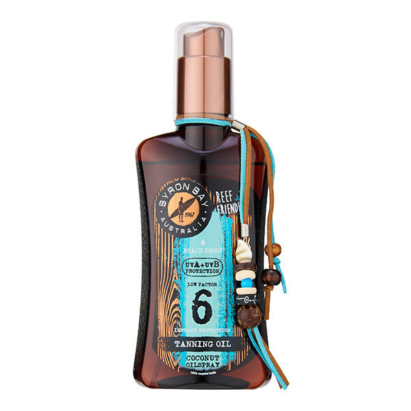 Get a sun-kissed glow with our Coconut Tanning Oil SPF 6! Infused with a coconut scent, it protects from UVA & UVB rays while preventing skin aging. Each bottle comes with a chic seashell and wooden bead charm.