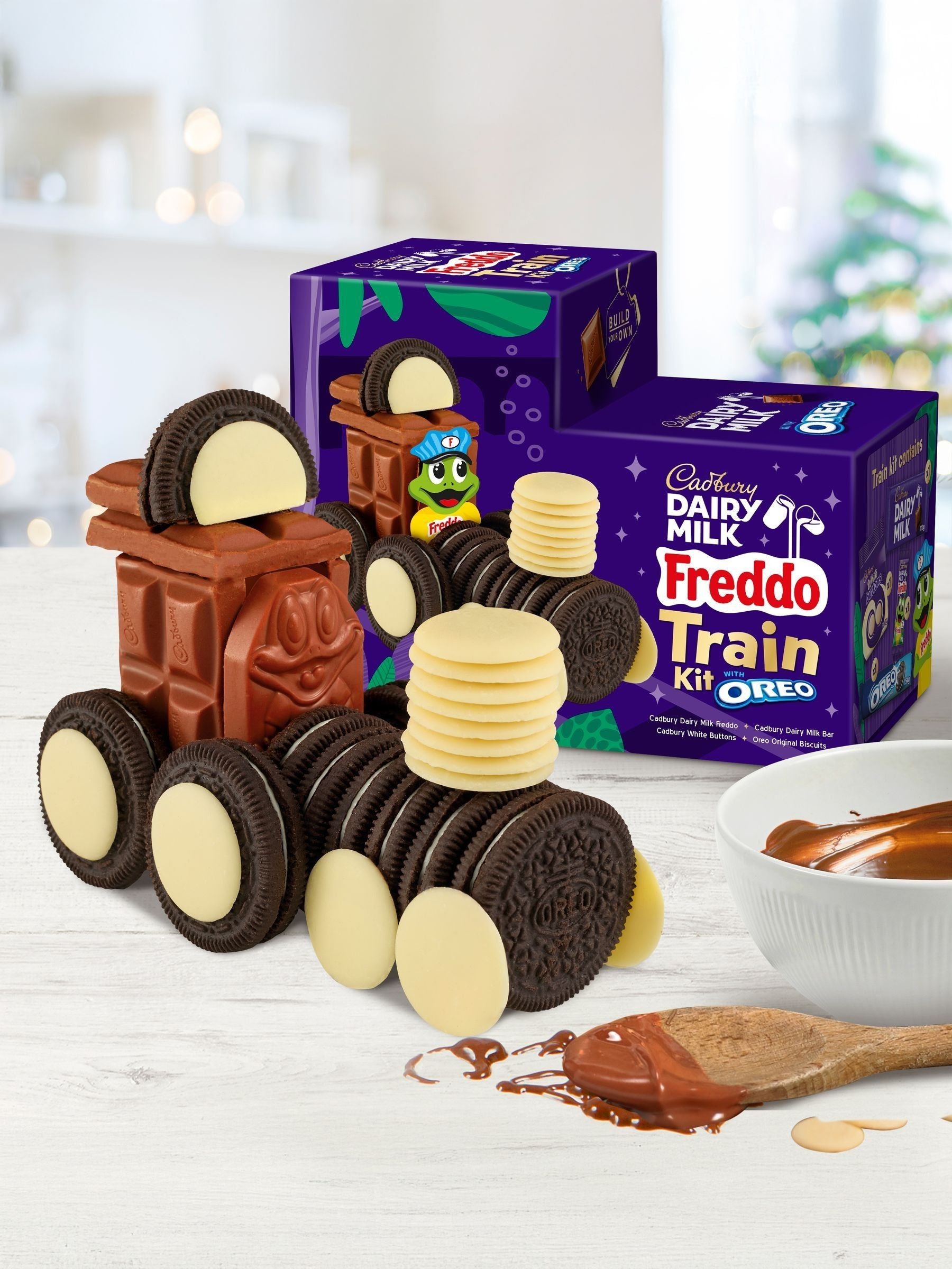 Cadbury Dairy Milk and OREO Train Set. Includes all the chocolate and biscuit components to construct your train.