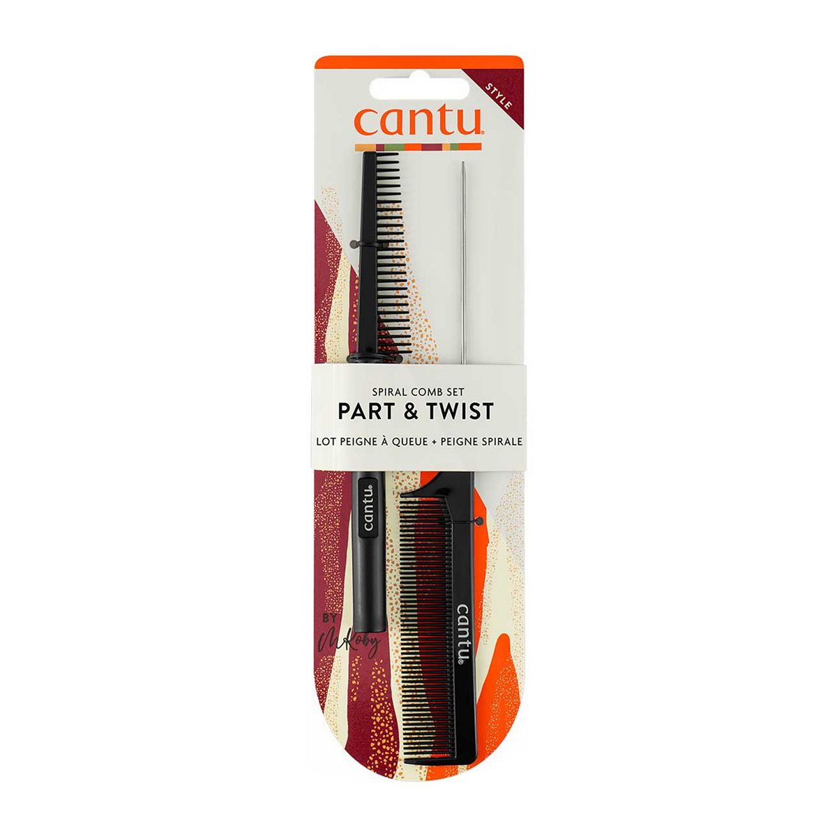 Cantu Styling Comb Set Pack Of 2This set features a uniquely designed spiral comb and a parting comb. The spiral comb is designed with shorter, wider teeth and a round handle for faster rotation when creating ringlets. The metal end comb can be used for precise parting.