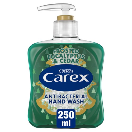 Read MoreCarex Frosted Eucalyptus and Cedar Festive Edition Antibacterial hand wash with festive fragrance.