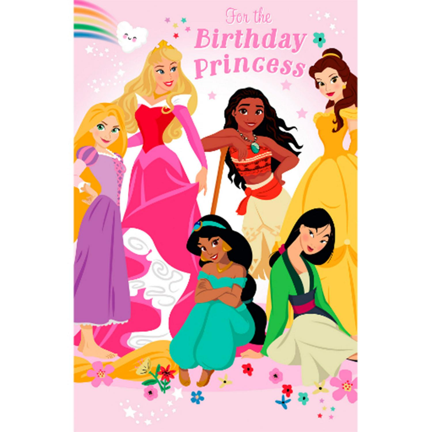 This Carlton greeting card is designed for celebrating a special occasion for a young royal. It features classic Disney Princess imagery suitable for a dedicated fan. The card comes complete with a matching envelope for easy posting or presentation.