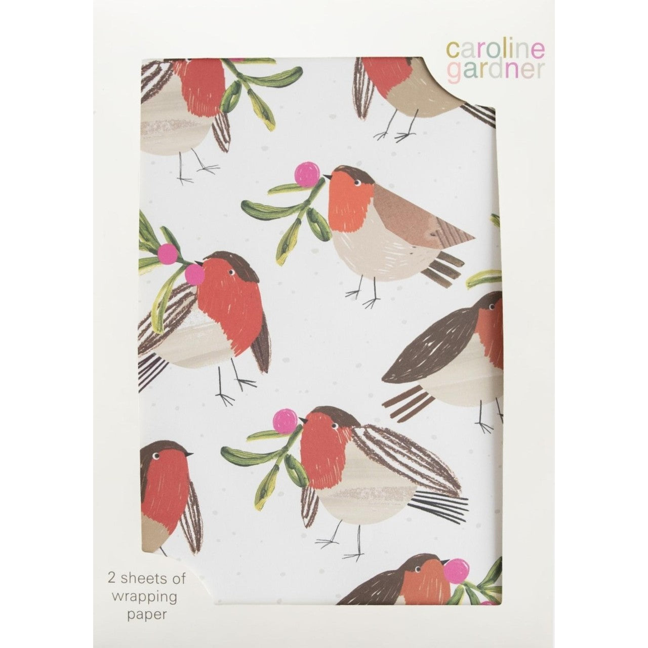 Introduce heartwarming charm to your festive presents using Caroline Gardner's Robin Christmas Gift Wrap. This delightful paper features distinctive designs showcasing the beloved red robin, a well-loved symbol of holiday joy and good tidings during the season.