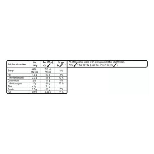 Reconstituted skimmed MILK, sugar, glucose syrup, oligofructose, fructose, coconut fat, skimmed MILK powder or concentrate, stabilisers (guar gum, locust bean gum, tara gum, carrageenan), exhausted vanilla bean pieces¹, emulsifier (mono- and diglycerides of fatty acids), natural vanilla flavouring¹, colour (carotenes). ¹Rainforest Alliance Certified