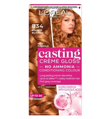 Read MoreLooking for easy gloss or trying to cover your first greys? Introducing new Casting Crème Gloss with Glycolic Gloss Complex! What does the new Casting Crème Gloss give you? Up to 3x glossier hair Lasts up to 28 shampoos Up to 4x silkier and visibly healthier hair First Grey Coverage What makes the new Casting Crème Gloss special? New formula with 10% Gloss complex with glycolic acid: 1. Intensely conditions & colours: for visibly healthier, shinier hair & grey coverage. 2. Seals the hair with shine for long-lasting mirror-like gloss.