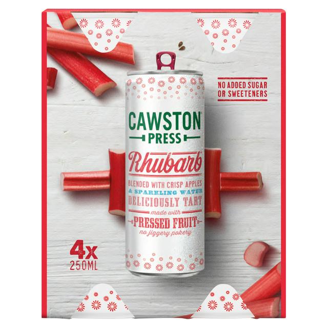 This Cawston Press beverage is a sparkling juice drink blending pressed rhubarb and apple juices with sparkling water. It is produced using 45% apple juice that has never been concentrated. This drink provides a refreshing taste profile suitable for various dietary preferences.